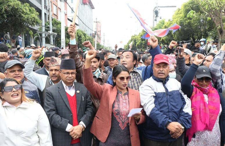 काठमाडौँ, १६ चैत । नेकपा एमालेका नेता कार्यकर्ताहरूले आज पनि विरोध प्रदर्शन गरेका छन् । अध्यक्ष केपी शर्मा ओलीका रिहाइको माग गर्दै उनीहरुले माइतीघरदेखि बानेश्वरसम्म जुलुस प्रदर्शन गरेका हुन् ।